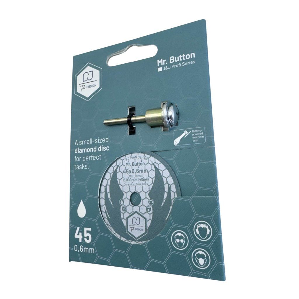 Mr. Button so stopkou je „žiletka“ medzi kotúčmi. S hrúbkou iba 0,6 mm je navrhnutý na chirurgicky presné výrezy otvorov pre tlačidlá, revízne dvierka alebo mozaiky.