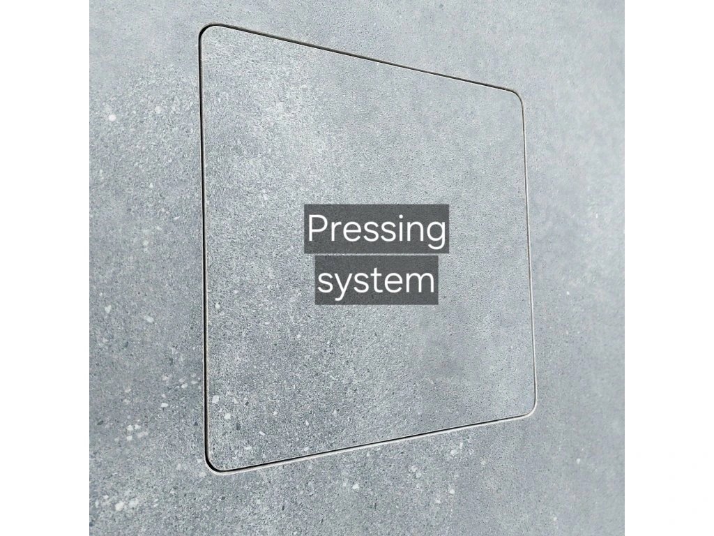 Systém funguje na princípe push-to-open (TIP-ON), vďaka čomu nie je potrebné žiadne madlo ani viditeľné úchyty. Revízne dvierka sú po zatlačení ľahko otvoriteľné a po zatvorení dokonale splývajú s povrchom obkladu.